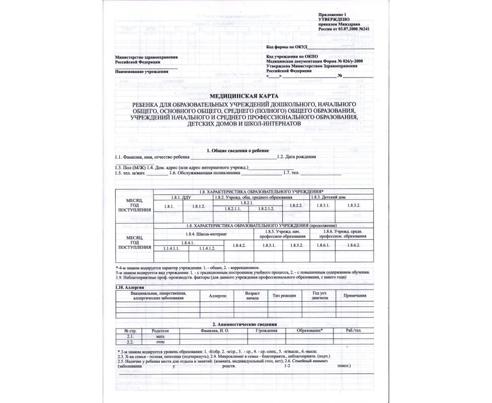 Медицинская карта (Форма №26)