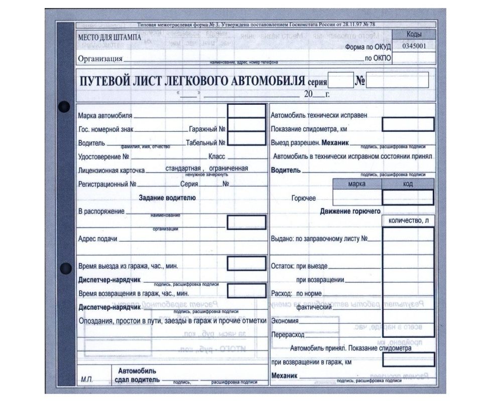 Путевой лист легкового автомобиля 2/3 А4 № 467 (от 21.12.2018 г)