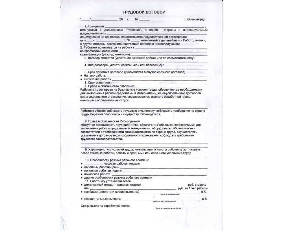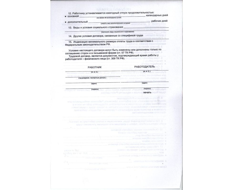 Трудовой договор "ЧП" (двухсторонний)