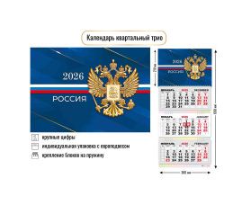 Календарь квартальный 2026 год 3-х бл., на 3-х гребнях "Госсимволика"