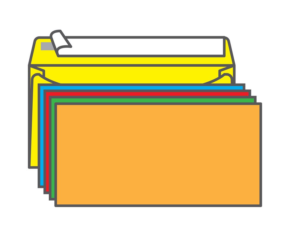 Конверт С65, KurtStrip, 114*229мм, отрывная силиконовая лента, радуга (5 цветов по 2шт. - зеленый, красный, желтый, оранжевый, голубой), 120 г/м2
