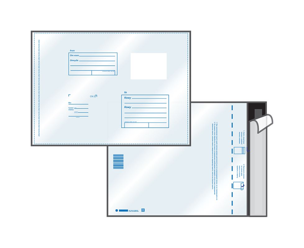 Пакет почтовый размер 280х380 мм., трёхслойный полиэтилен, отрывная лента.