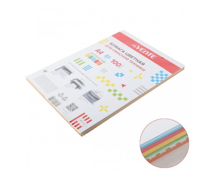 Бумага А4 deVente, 80 г/м2, 100 листов, ассорти интенсив