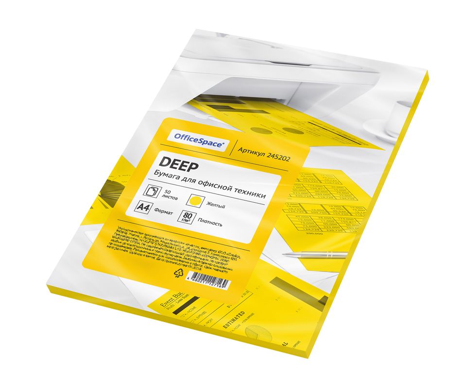 Цветная бумага формата А4, плотность 80 г/м2, цвет deep желтый, 50 листов, упаковка - пакет с клеевой полосой.