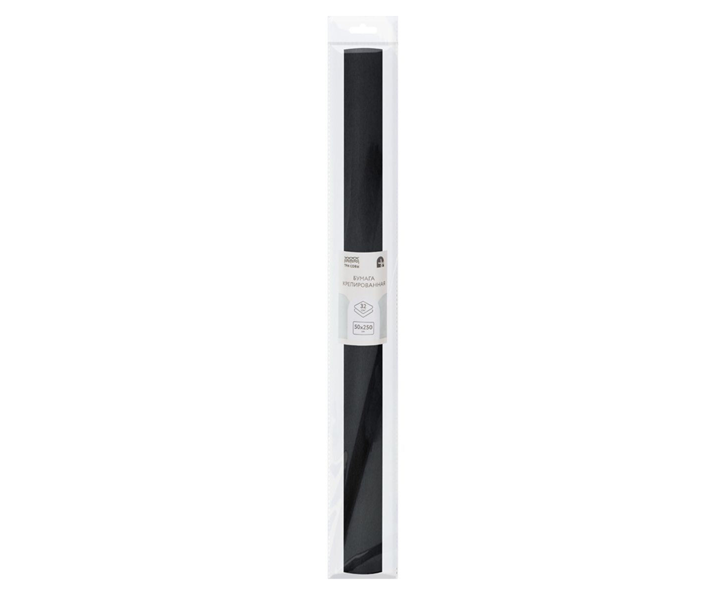 Бумага крепированная ТРИ СОВЫ, 50*250см, 32г/м2, черная, в рулоне, пакет с европодвесом CR_43993