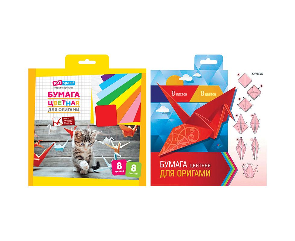 Цветная бумага 8л,8цв.для оригами 197*197мм СПЕЙС