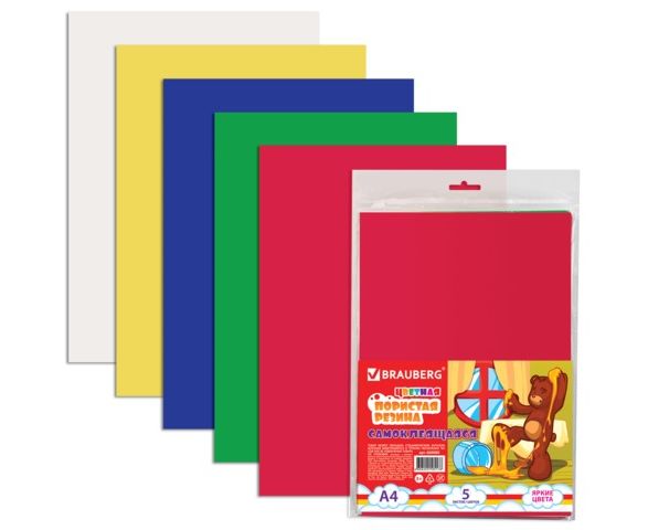 Цветная пористая резина (фоамиран) для творчества А4, толщина 2 мм, BRAUBERG, 5 листов, 5 цветов, са