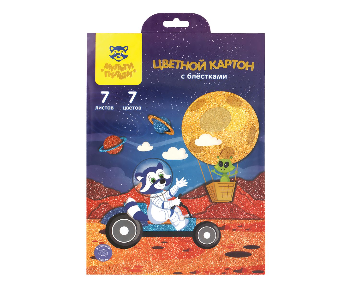 Картон цветной А5, Мульти-Пульти, 7л., 7цв., с блестками, "Енот в космосе" КЦб7А5_38716
