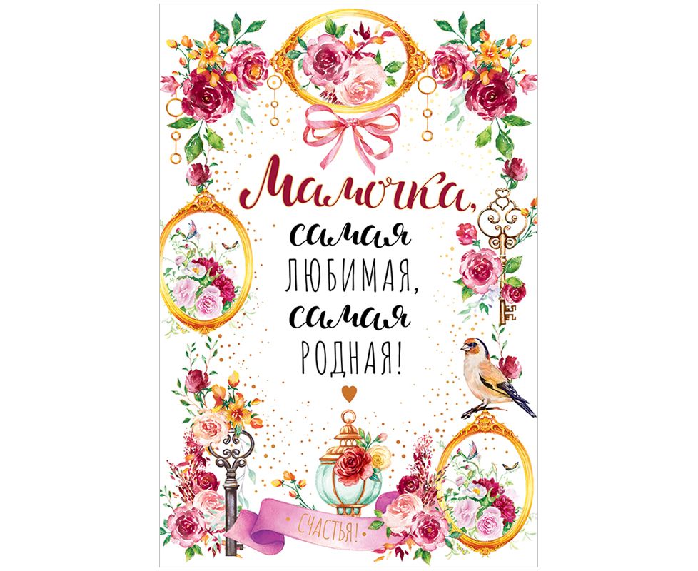 Данной открыткой с готовым текстом - поздравлением внутри Вы сможете поздравить маму. На лицевой стороне располагается надпись «Мамочка, самая любимая, самая родная!». Фасовка по 10 шт. Размер изделия: 122*182 мм