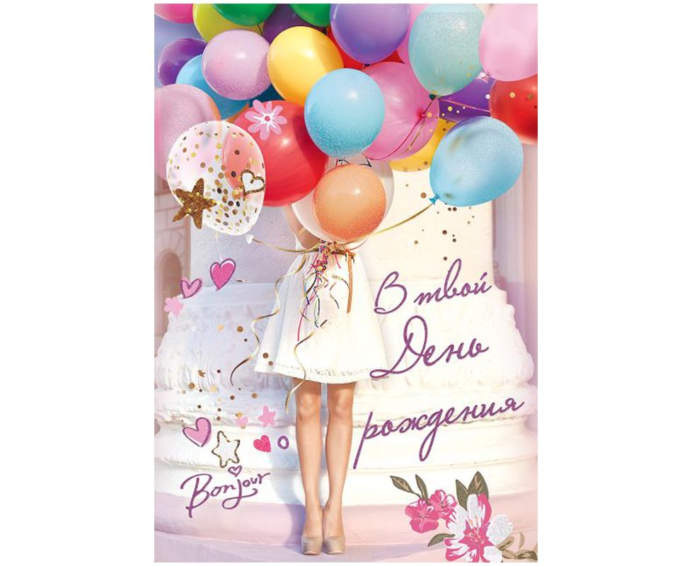 Открытка с готовым текстом - поздравлением внутри. На лицевой стороне располагается надпись «В твой День рождения». Фасовка по 10 шт. Размер изделия: 126*182 мм