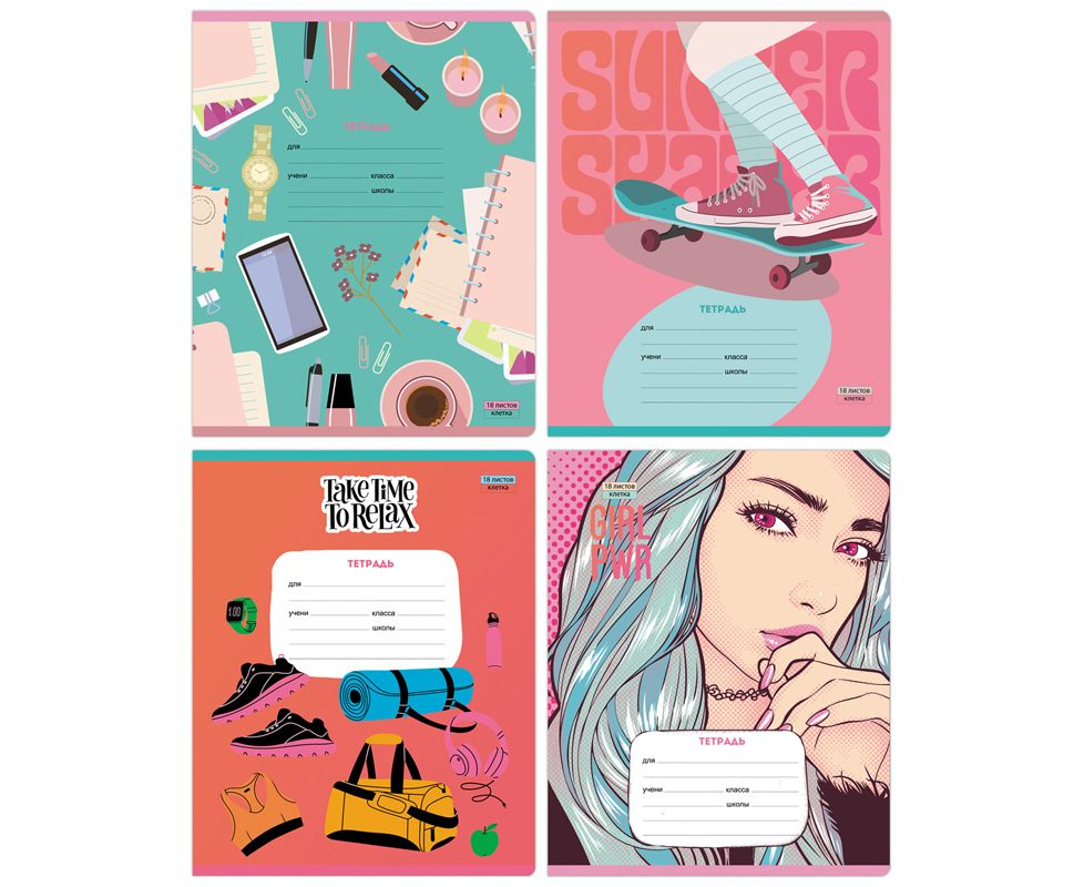 Тетрадь BG серии «Девочки рулят» в клетку. Формат А5 (165*205 мм). Вид крепления – скрепка. Внутренний блок – это 18 листов, офсетная бумага плотностью 70 г/м². Обложка выполнена из мелованного картона с выборочным лаком. В серии 4 стильных дизайна, которые идеально подойдут для школьниц любого года обучения. Сзади на обложке размещена таблица умножения