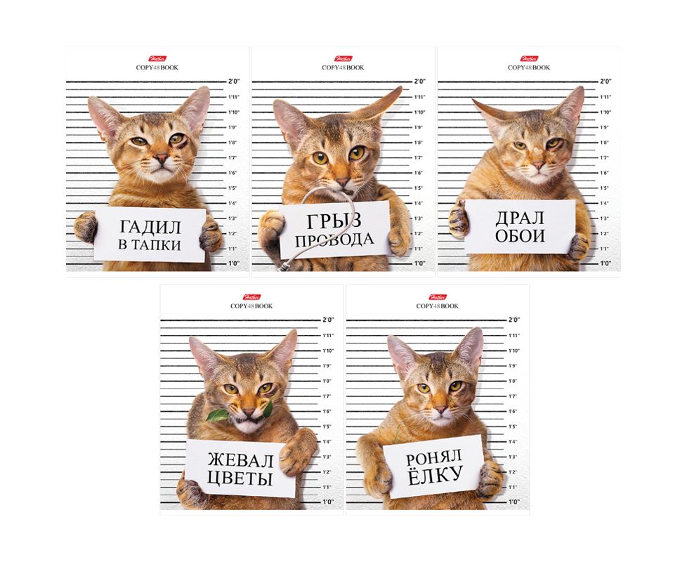 Тетрадь 48л., А5, клетка Hatber "Кот-обормот"