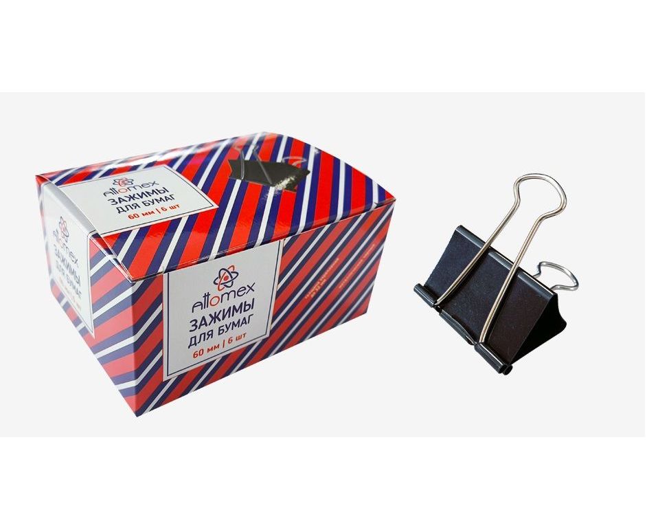 Зажимы для бумаг 60 мм (6 шт) черные в картонной коробке Attomex/72