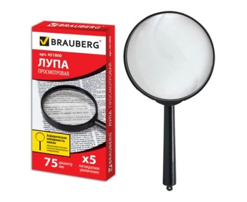 Просмотровая лупа BRAUBERG облегчает чтение, просмотр карт, мелких рисунков, шкал, схем.