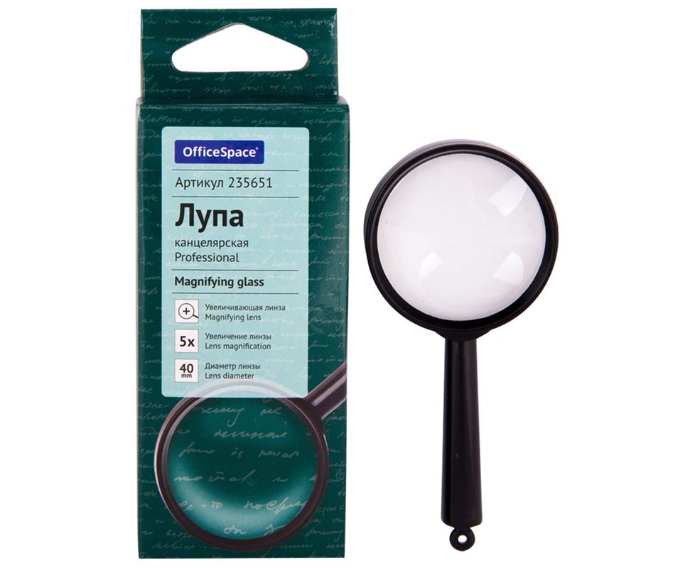 Лупа OfficeSpace, 40мм, 5-х кратное увеличение, карт. коробка, европодвес 235651