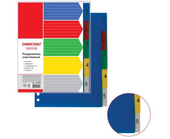 Разделитель пластиковый А5 цифр. (1-5) ОФИСМАГ, цветной