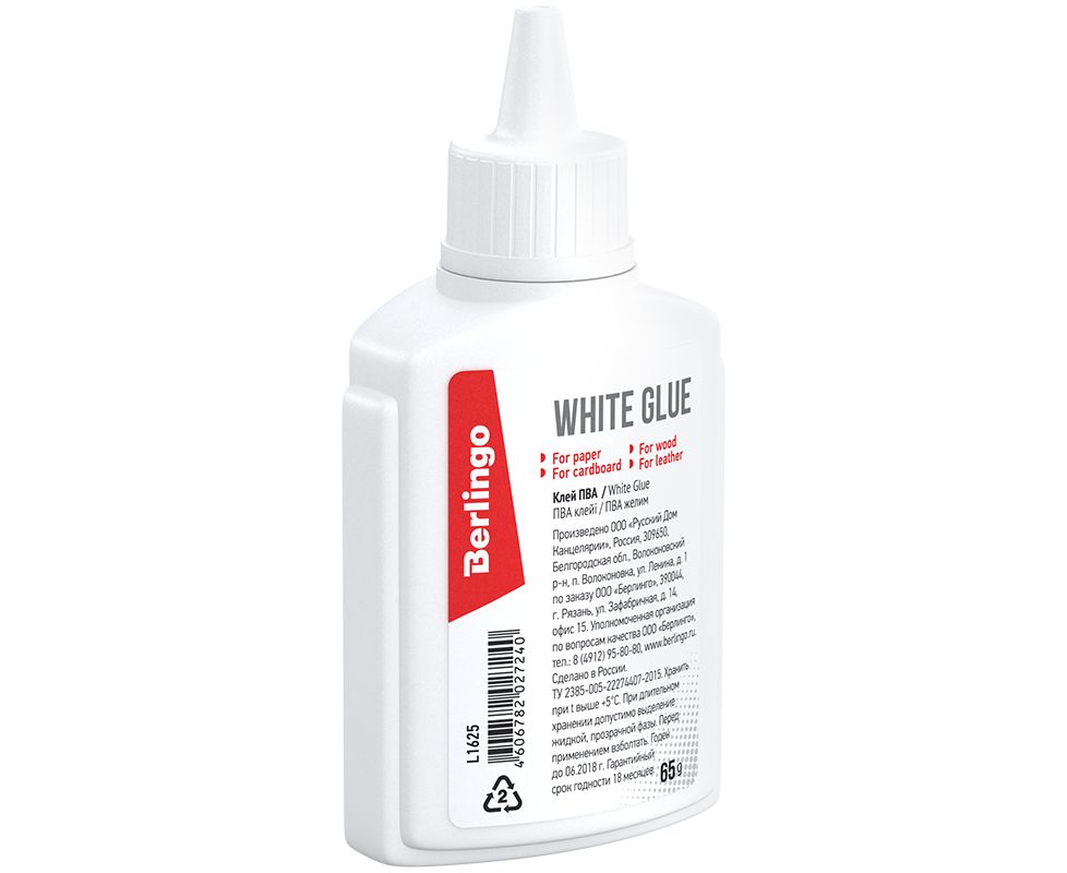 Клей ПВА Berlingo предназначен для склеивания бумаги, картона, дерева, стекла, кожи, ткани. Вес - 65 граммов. В термоусадке по 10 штук. Клей морозостойкий. Выдерживает 5 циклов заморозки/разморозки при температуре до -40°С, сохраняя при этом однородность текстуры и потребительские свойства. Упаковка не деформируется при низких температурах. Хранить при температуре свыше +5°С. Удобный флакон с дозатором, который обеспечивает экономичный расход клея. Не содержит растворителя. Не оставляет следов и легко смывается водой.