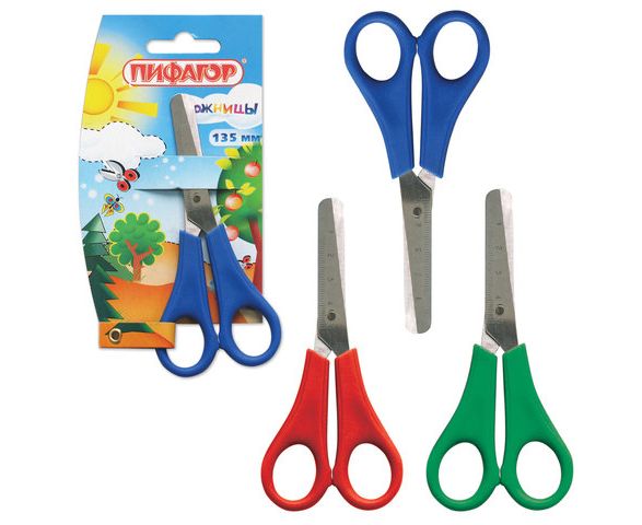 Ножницы 13,5 см. ПИФАГОР детские с линейкой