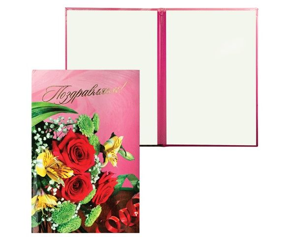 Папка "Поздравляем"(букет на розовом) А4