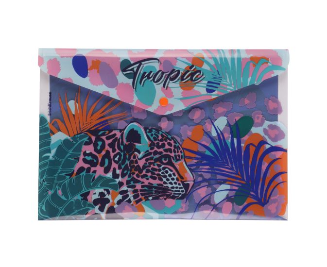 Папка-конверт на кнопке, А4, 0,16 мм, цвет с рисунком, Tropical, Erich Krause, 61157