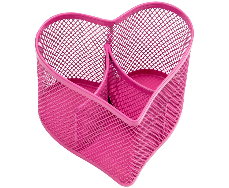 Стильная и элегантная металлическая подставка-органайзер, выполненная в форме сердца. Практичная и функциональная конструкция предназначена для хранения различных канцелярских принадлежностей. Может послужить отличным подарком. Прочный корпус из высококачественного металла. Сетчатое исполнение предотвращает образование пыли внутри.