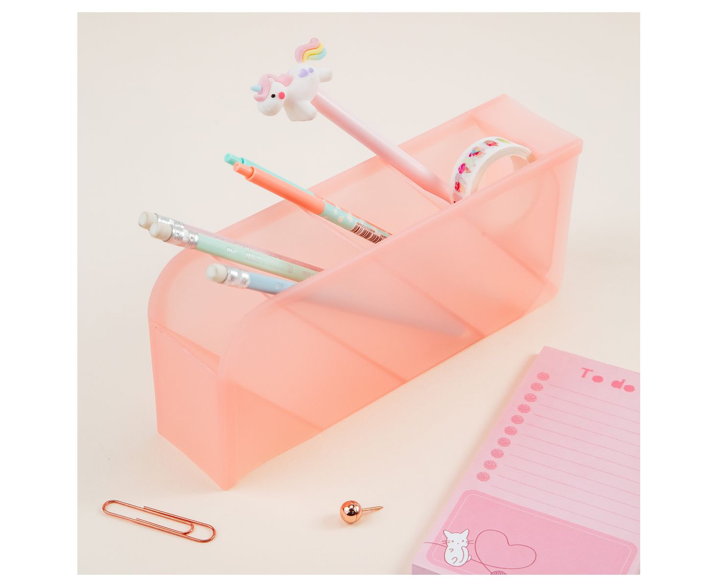 Настольная подставка MESHU на 4 секции в розовом цвете предназначена для хранения пишущих принадлежностей и канцелярских мелочей. Размер – 5*8,5*20 см. Подставка изготовлена из пластика. Её можно расположить как вертикально, так и горизонтально. Упакована в термоусадочную пленку.
