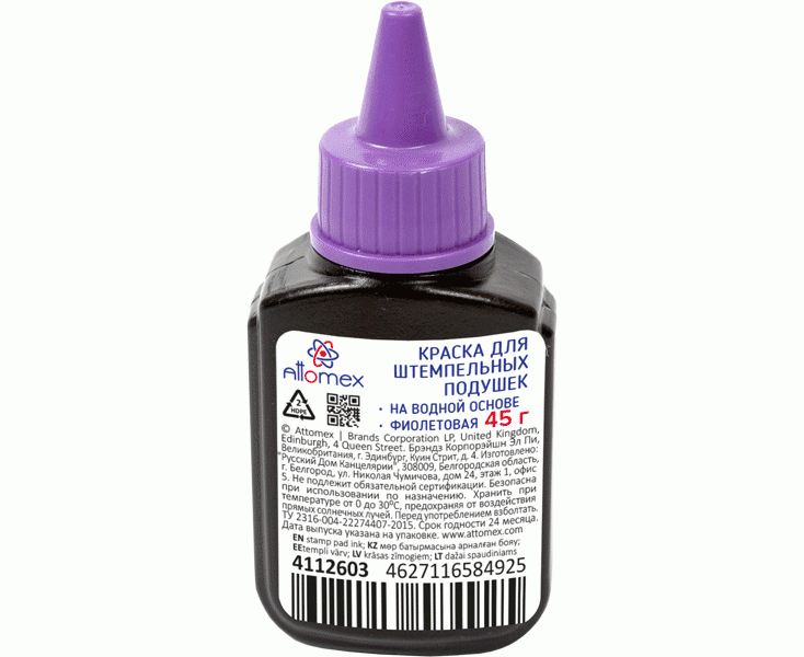 Краска штемпельная фтолетовая 45 мл Attomex с дозатором/72