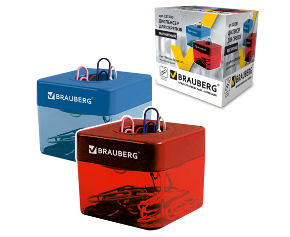Скрепочница магнитная BRAUBERG с 20 скрепками
