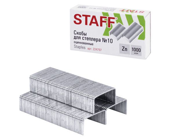 Стальные скобы серебристого цвета для степлера STAFF размером № 10.