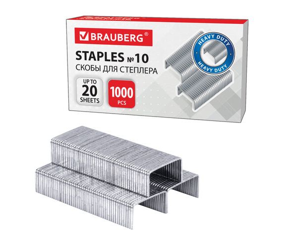 Стальные скобы серебристого цвета для степлера BRAUBERG размером № 10.