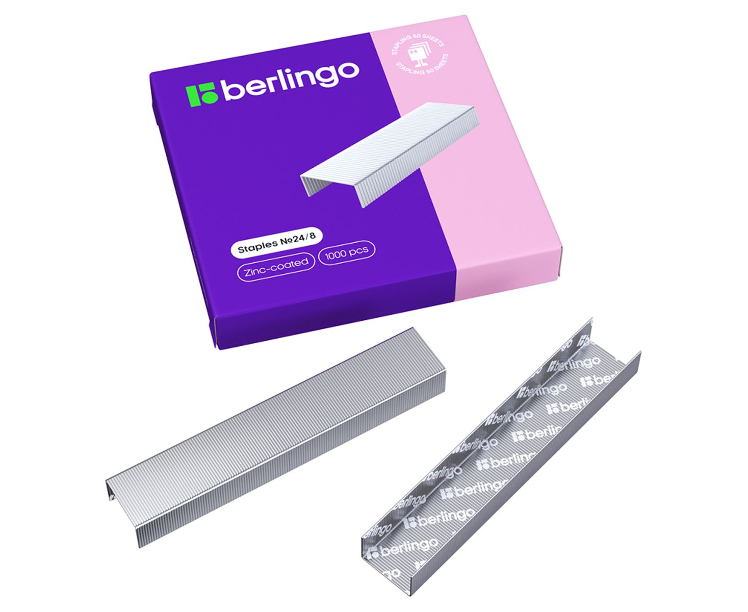 Скобы для степлера №24/8 Berlingo изготовлены из стальной проволоки, усиленный металл с покрытием из цинка предотвращает появленние коррозии.