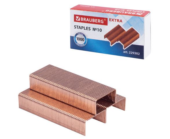 Скобы для степлера медное покрытие №10, 1000 штук, BRAUBERG "EXTRA", до 20 листов, 229302