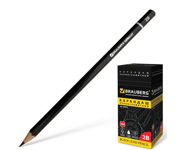 Карандаш Brauberg 2B"Touch line",черный заточенный