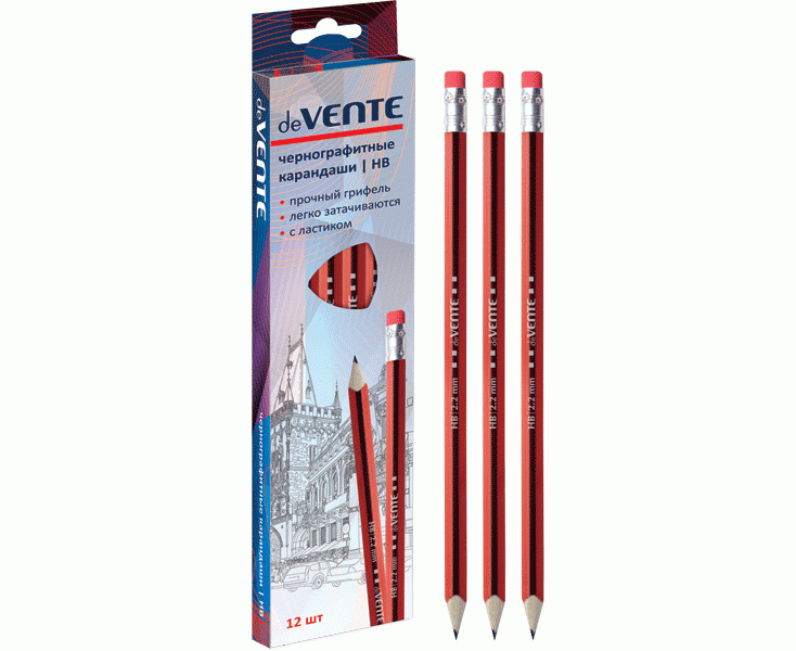 Карандаш простой с ластиком HB deVENTE трехгранный черно-красный корпус