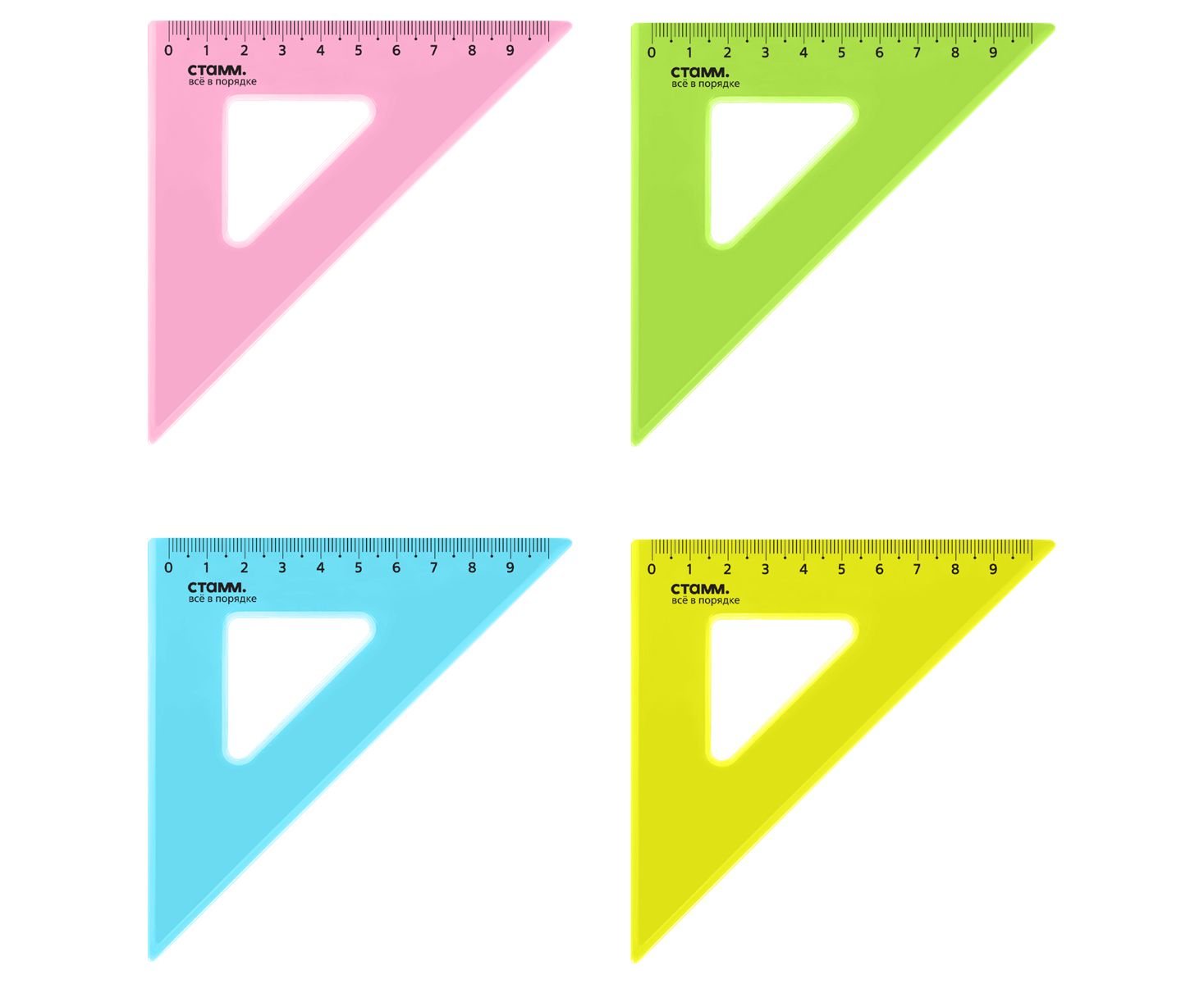 Треугольник 45°, 9см СТАММ, пластиковый, прозрачный, неоновые цвета, ассорти ТК32
