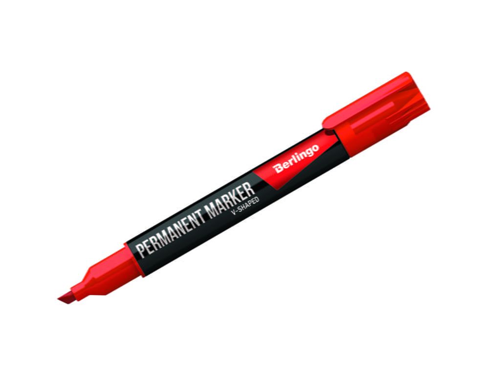Маркер перманентный BERLINGO,красный,скошенный