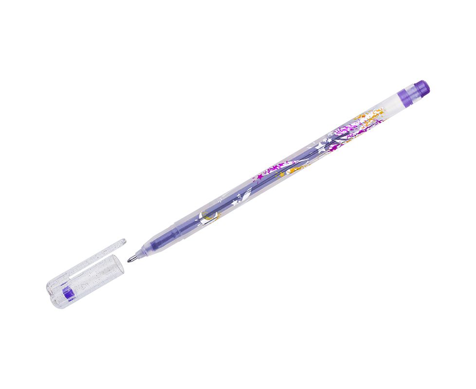Ручка гелевая CROWN фиолетовая с блёстками, 1мм