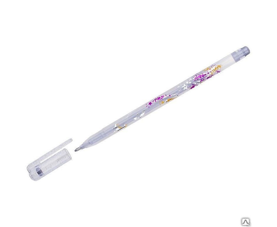 Ручка гелевая Crown "Glitter Metal Jell" серебро с блестками, 1,0мм MTJ-500GLS(D)