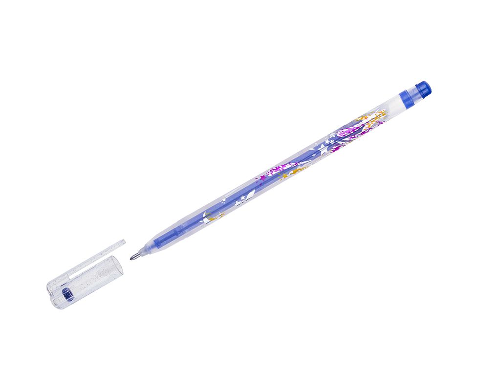 Ручка гелевая CROWN синяя с блёстками, 1мм