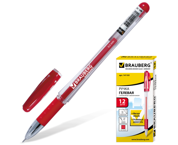 Ручка гелевая BRAUBERG, игольчатый узел,красная