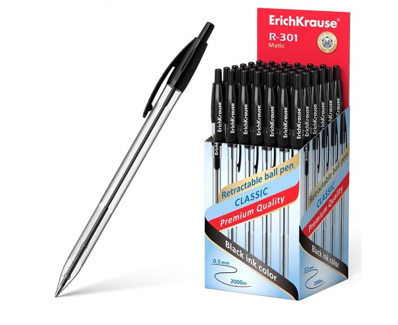 Ручка шариковая автоматическая ERICH KRAUSE R-301 черная, 1,0 мм