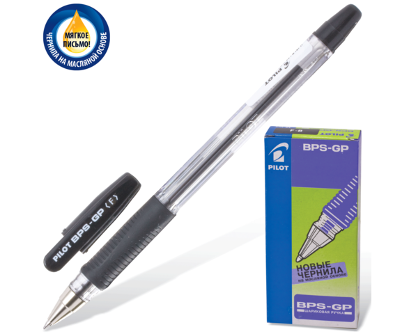Ручка шариковая PILOT 0,7мм, чёрная, с резиновым упором,