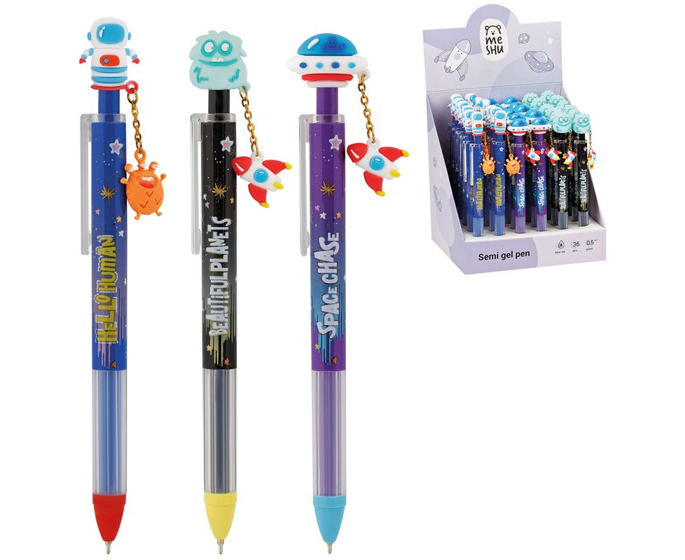 Ручка шариковая автоматическая MESHU "Space Journey" синяя, 0,5мм, грип, корпус ассорти, с топпером