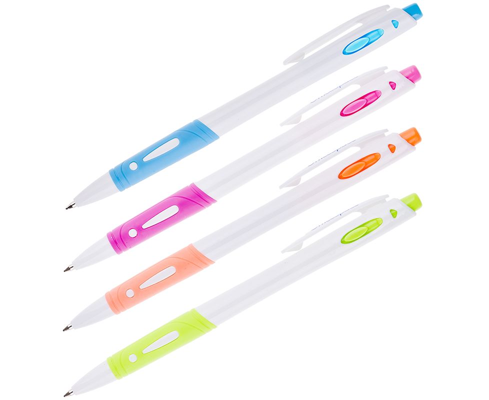 Автоматическая шариковая ручка OfficeSpace – отличный инструмент для ежедневного использования. Внутри белого пластикового корпуса – синие чернила. На ручке есть клип – можно закрепить её на одежде или тетради. Специальная резиновая накладка грип-зоны препятствует выскальзыванию ручки из пальцев. Некоторые детали тонированы в разные цвета: салатовый, оранжевый, голубой, розовый. Благодаря диаметру пишущего узла 0,7 мм подходит для любого стиля письма.
