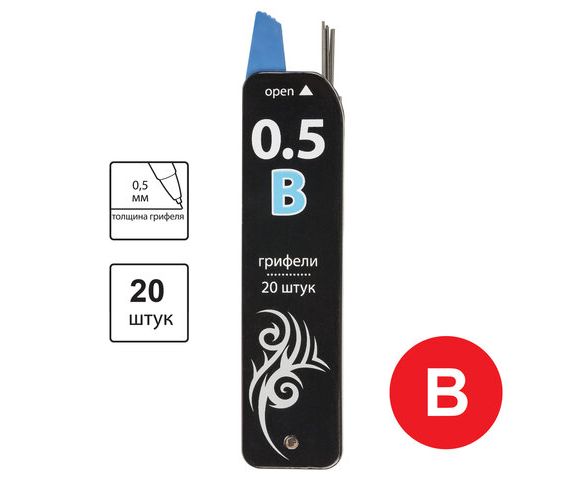 Грифели запасные 0,5 мм, B, BRAUBERG, КОМПЛЕКТ 20 шт., "Black Jack", 180449