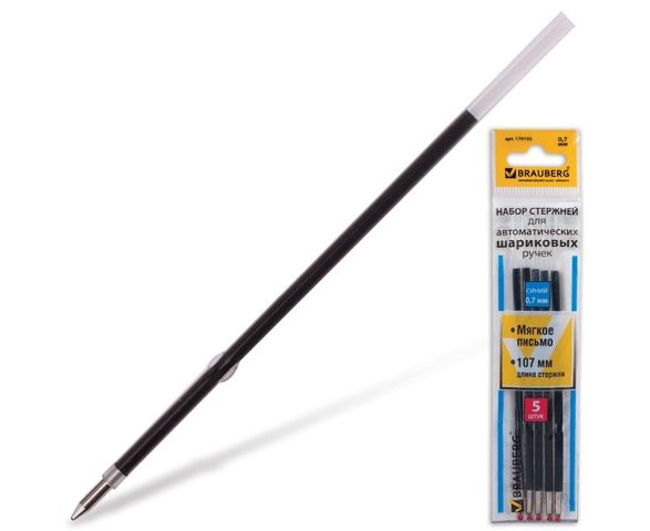 Стержень шариковый Brauberg 107мм 0.5мм синий с ушками