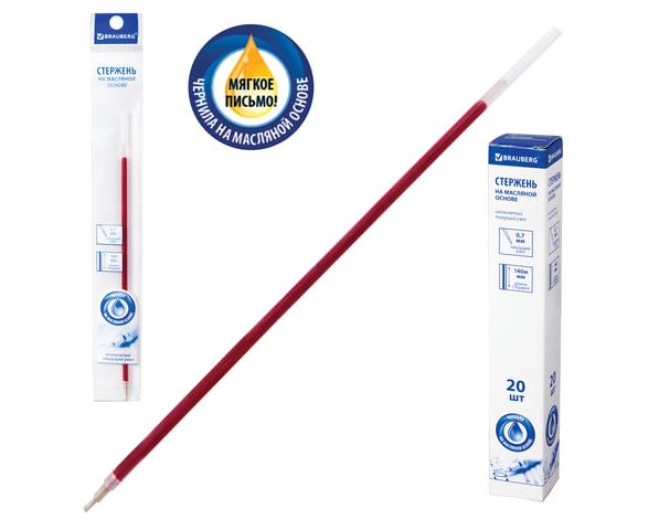 Стержень шариковый Brauberg 140мм красный