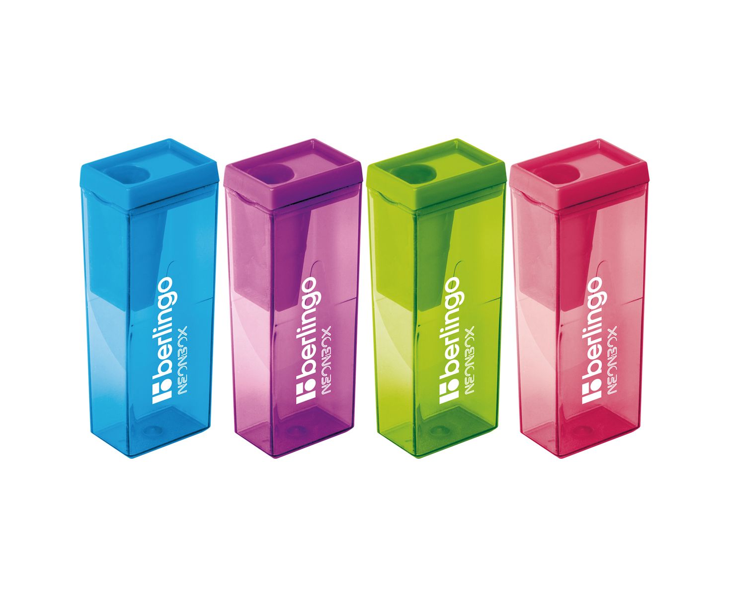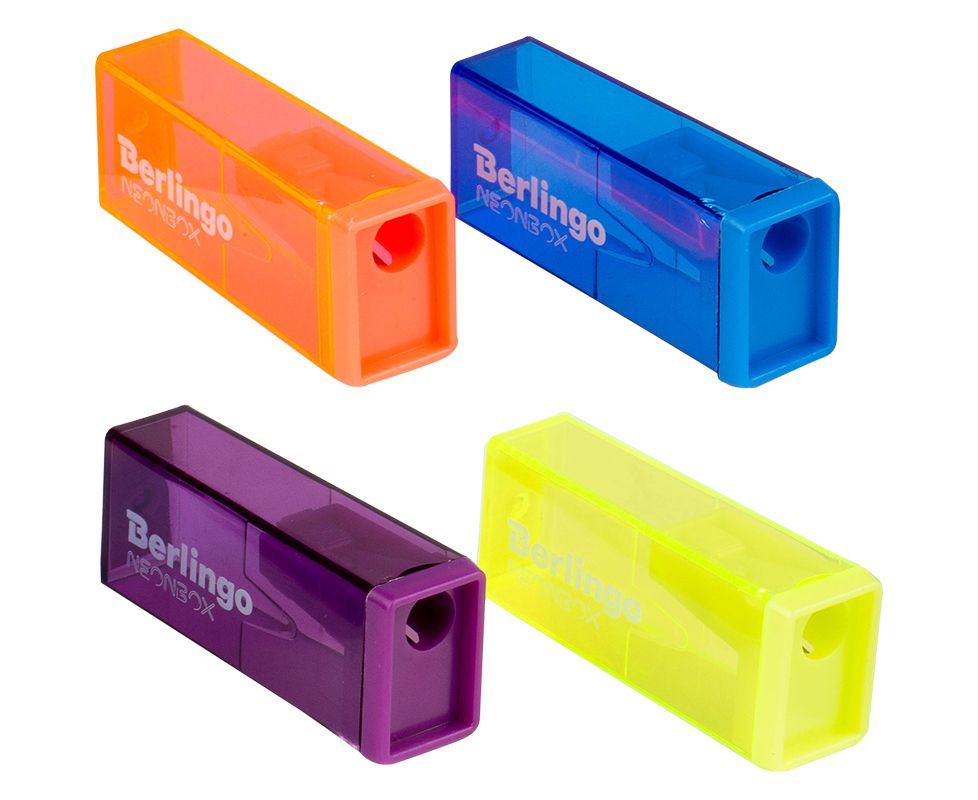 Точилка BERLINGO "NeonBox" 1отверстие, контейнер, ассорти