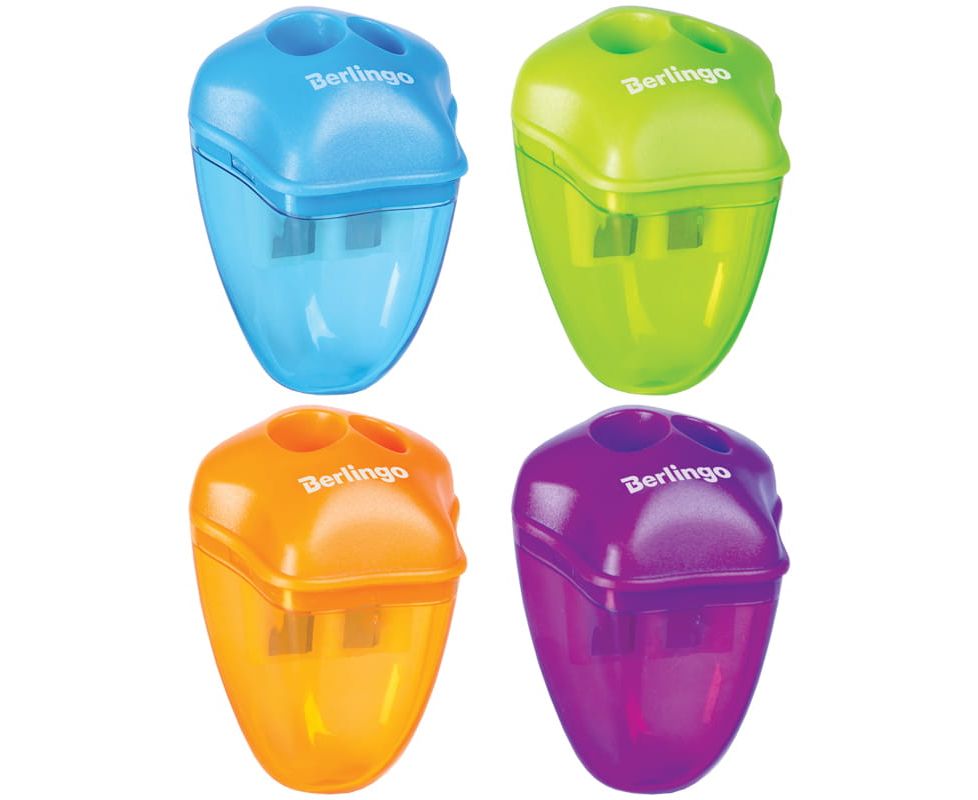 Точилка пластиковая Berlingo "Spike XL", 2 отверстия, контейнер, ассорти