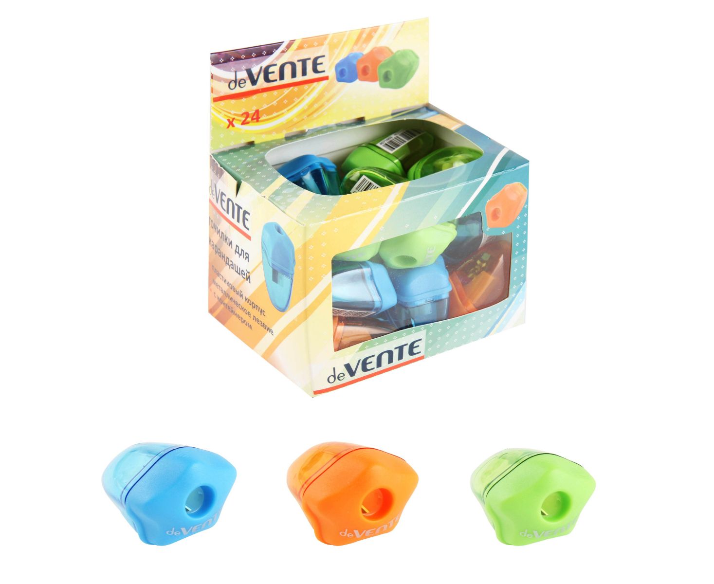 Точилка ручная пластик, 1 отверстие, 30*45 мм, контейнер для сбора стружки, ассорти 3 вида deVENTE 4